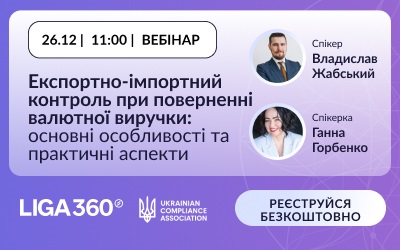 Безкоштовний вебінар: «Експортно-імпортний контроль при поверненні валютної виручки: основні особливості та практичні аспекти»
